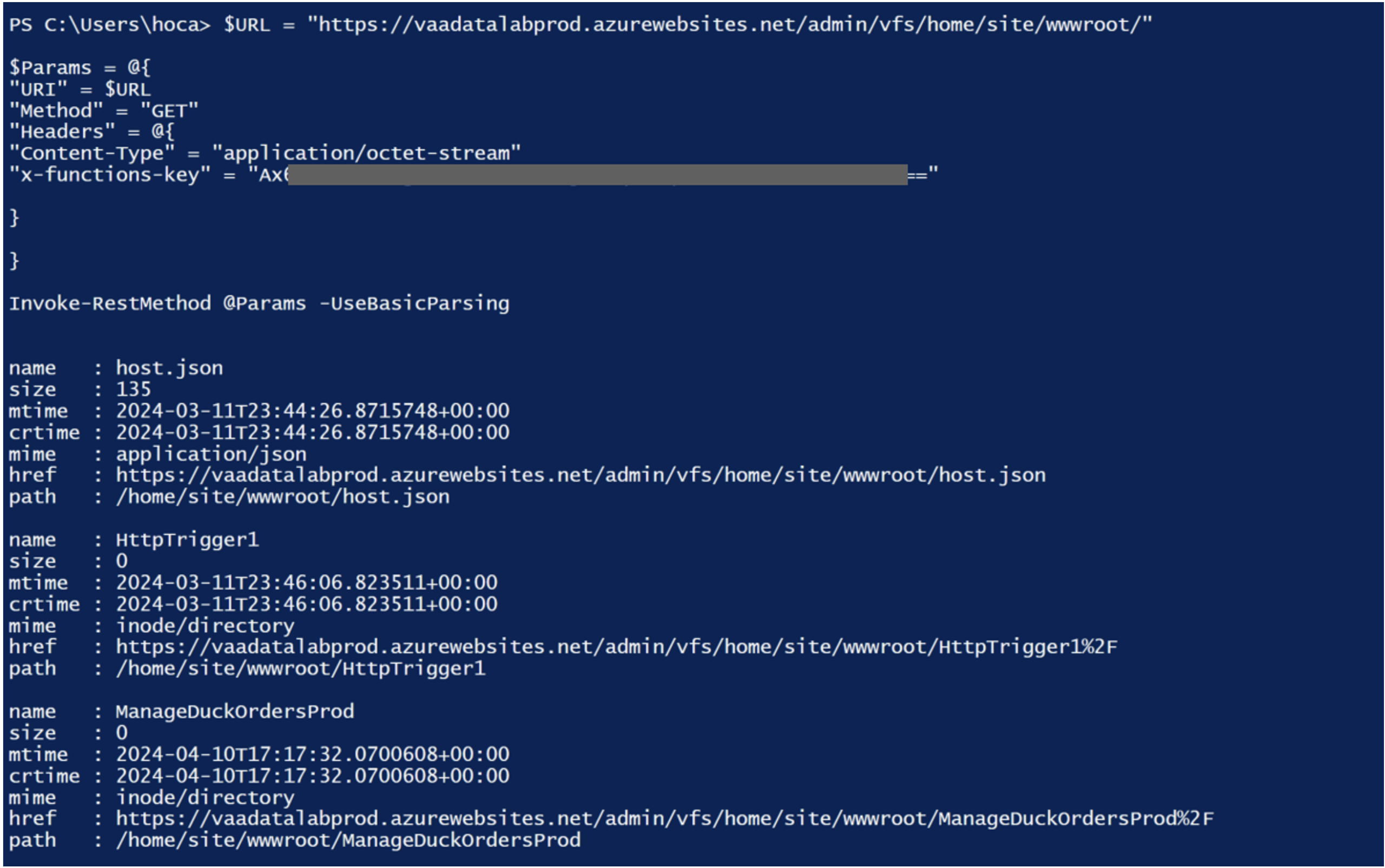 $URL = "https://vaadatalabprod.azurewebsites.net/admin/vfs/home/site/wwwroot/"