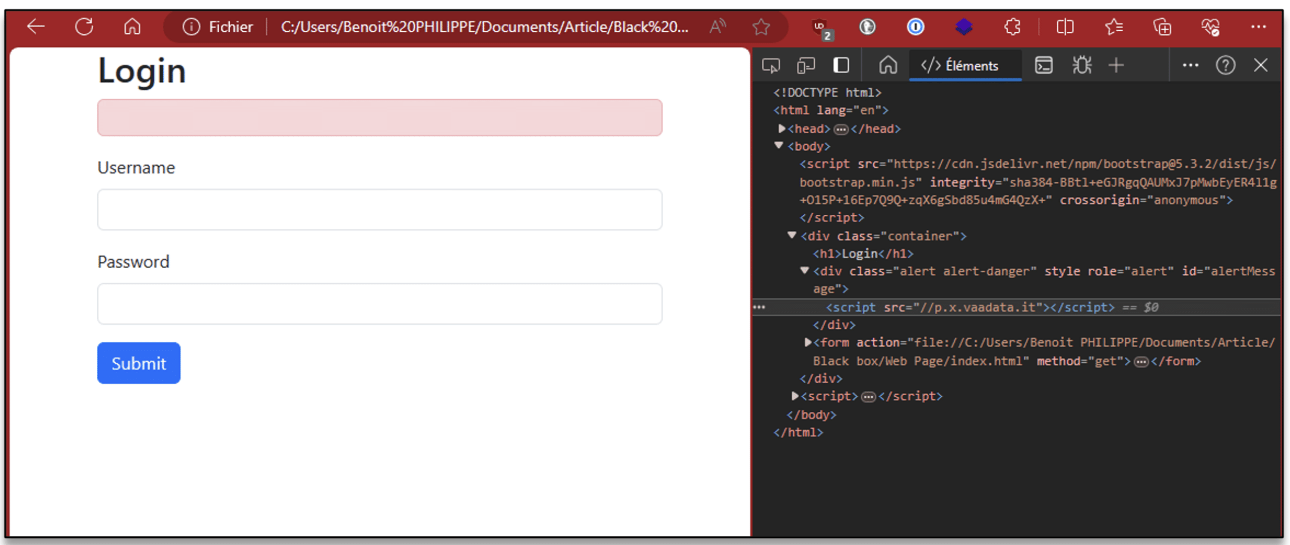 We are interested here in any type of vulnerability capable of modifying the legitimate behaviour of the login page.