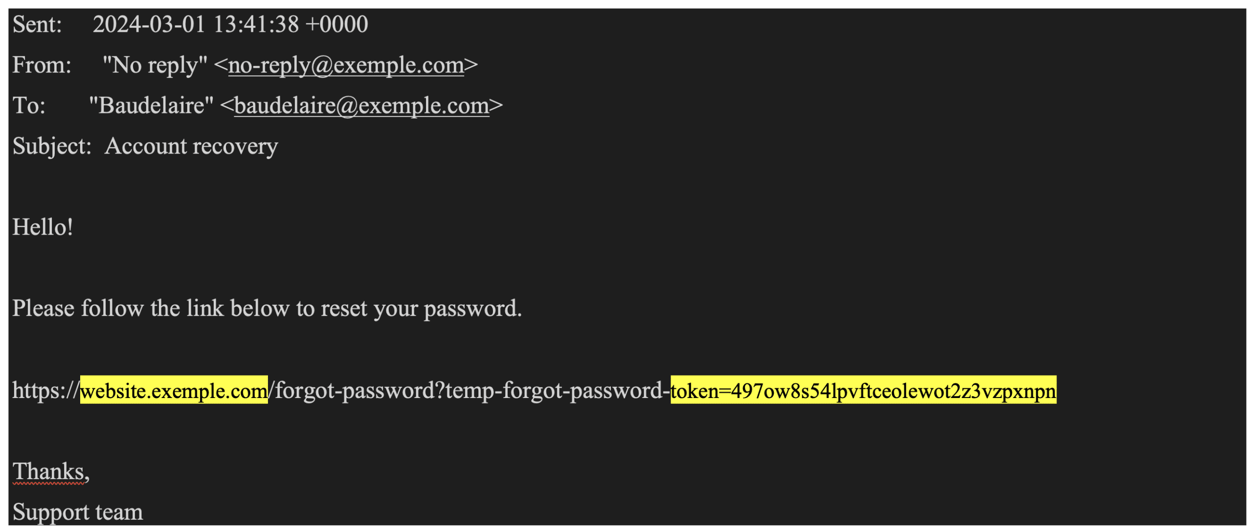 On rare occasions, this is made possible by certain parameters that can be controlled on the client side. If we cannot modify the recipient, we can sometimes modify the content of the email using elements under our control.