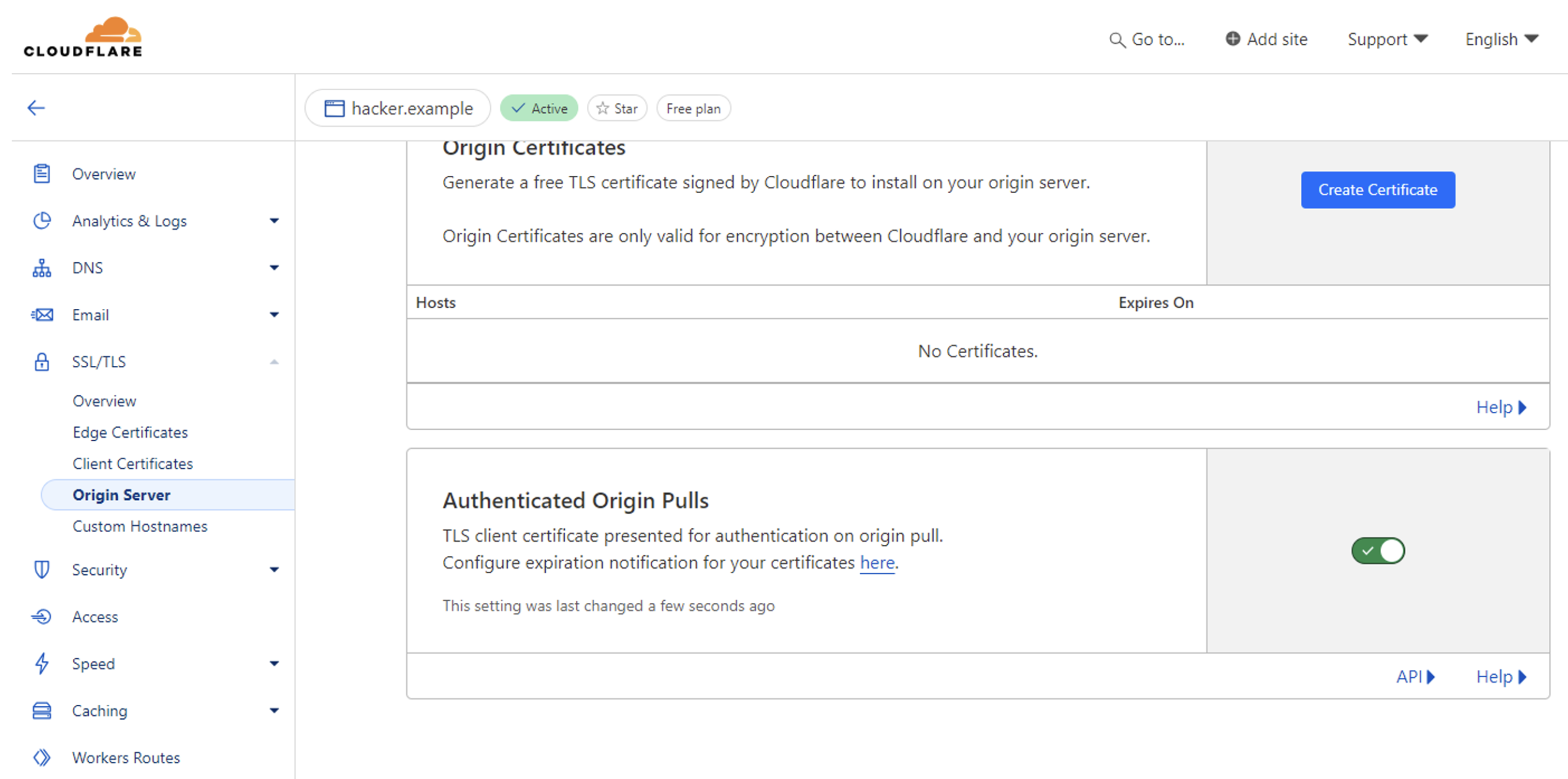 Then activate the Authenticated Origin Pulls option on his Cloudflare domain. Here’s how it works: