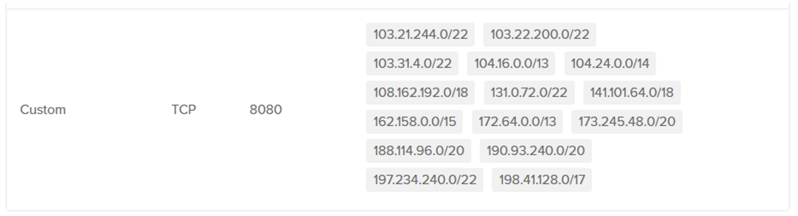 100015 (Anomaly:Port – Non Standard Port (not 80 or 443)) to block connections to ports other than 80 and 443.8e361ee4328f4a3caf6caf3e664ed6fe (Anomaly:Port – Non Standard Port (not 80 or 443)) to detect and prevent access to non-standard ports.By applying these rules, you ensure that only connections on authorised ports (80 and 443) are accepted, reducing the risk of exposing unsecured or unexpected services via Cloudflare.