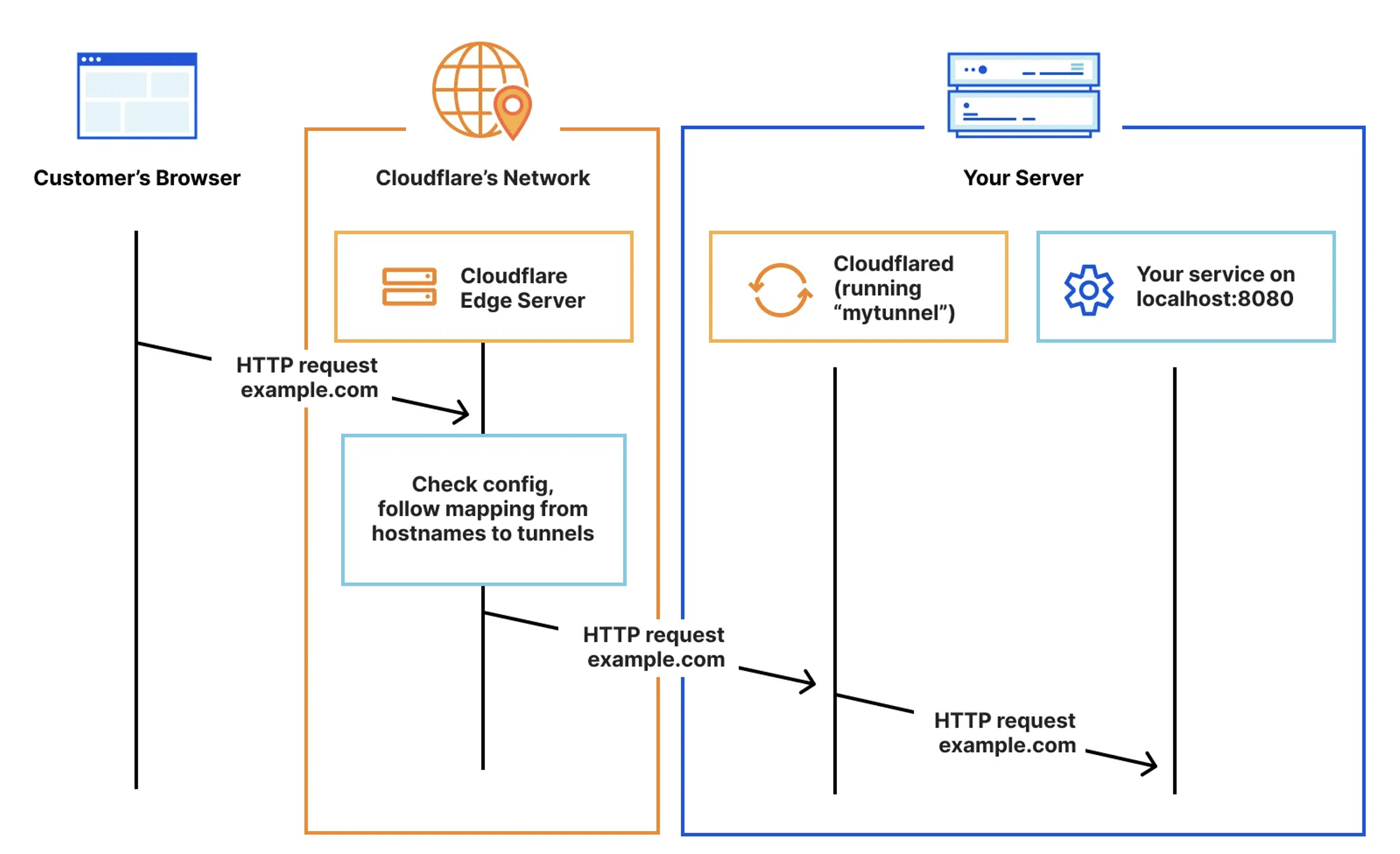 A Cloudflare tunnel works as follows: