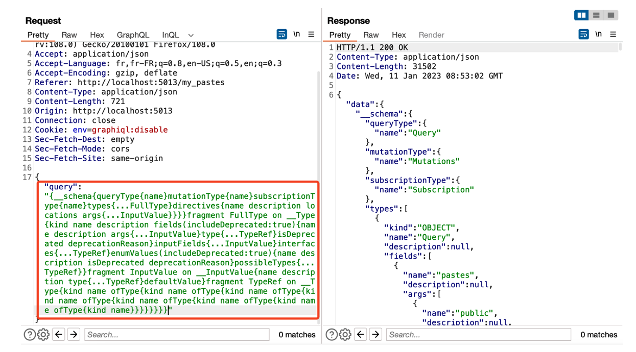 To do this, several methods can be used to retrieve this schema, such as Burp’s InQL extension, or manually by using the following GraphQL query if introspection is enabled.