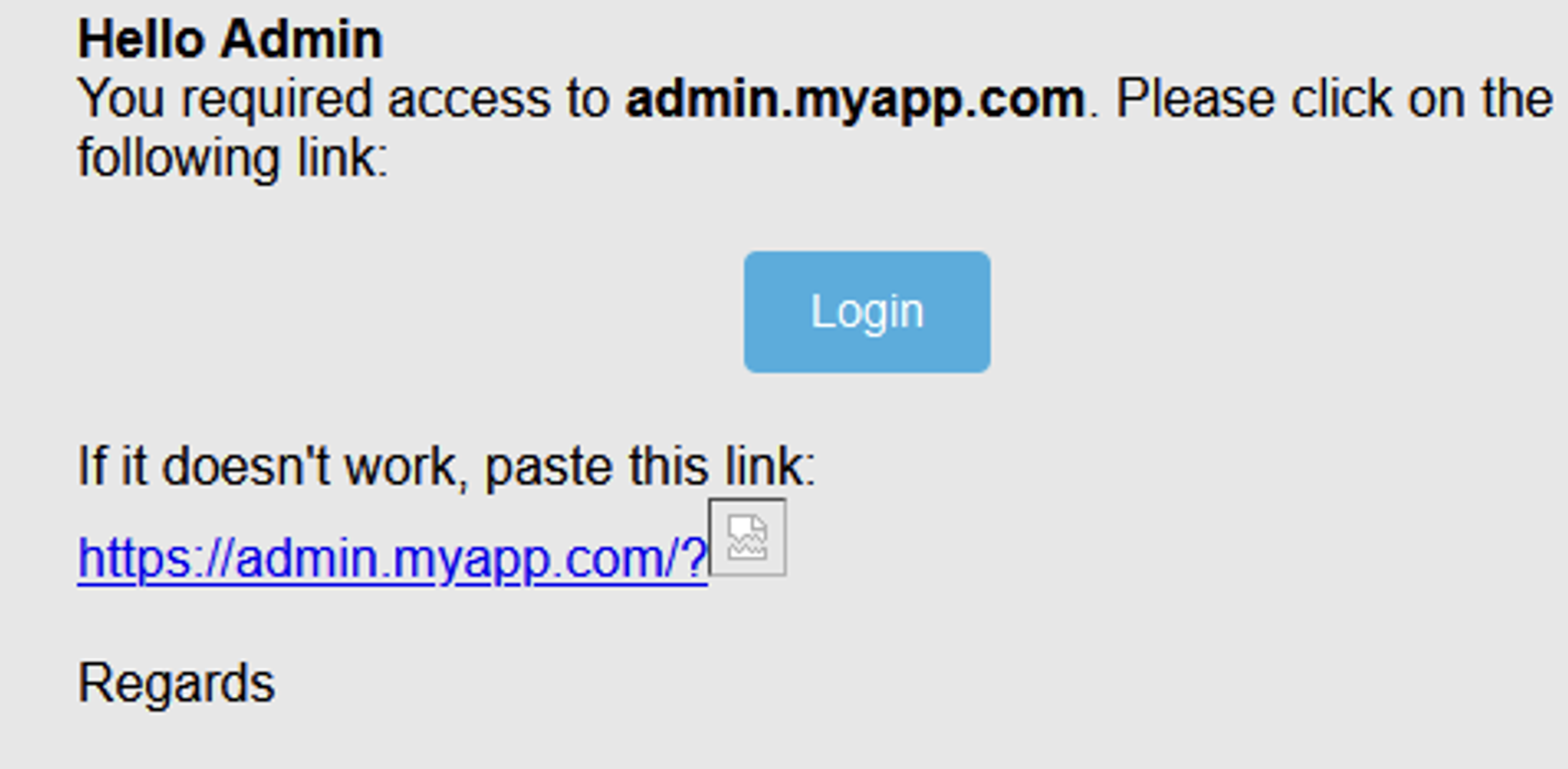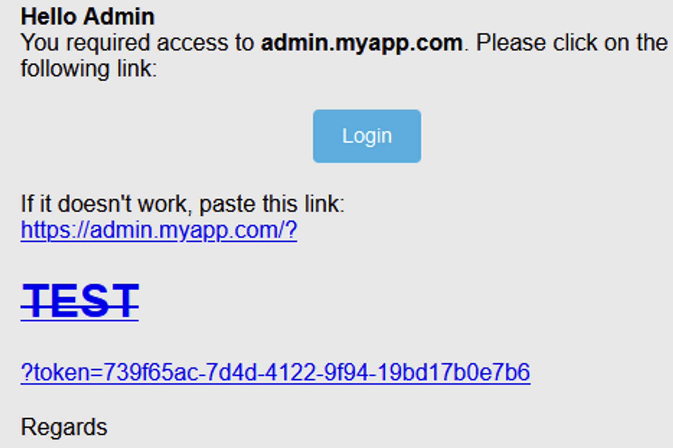 The email received by the administrator looks like the following: