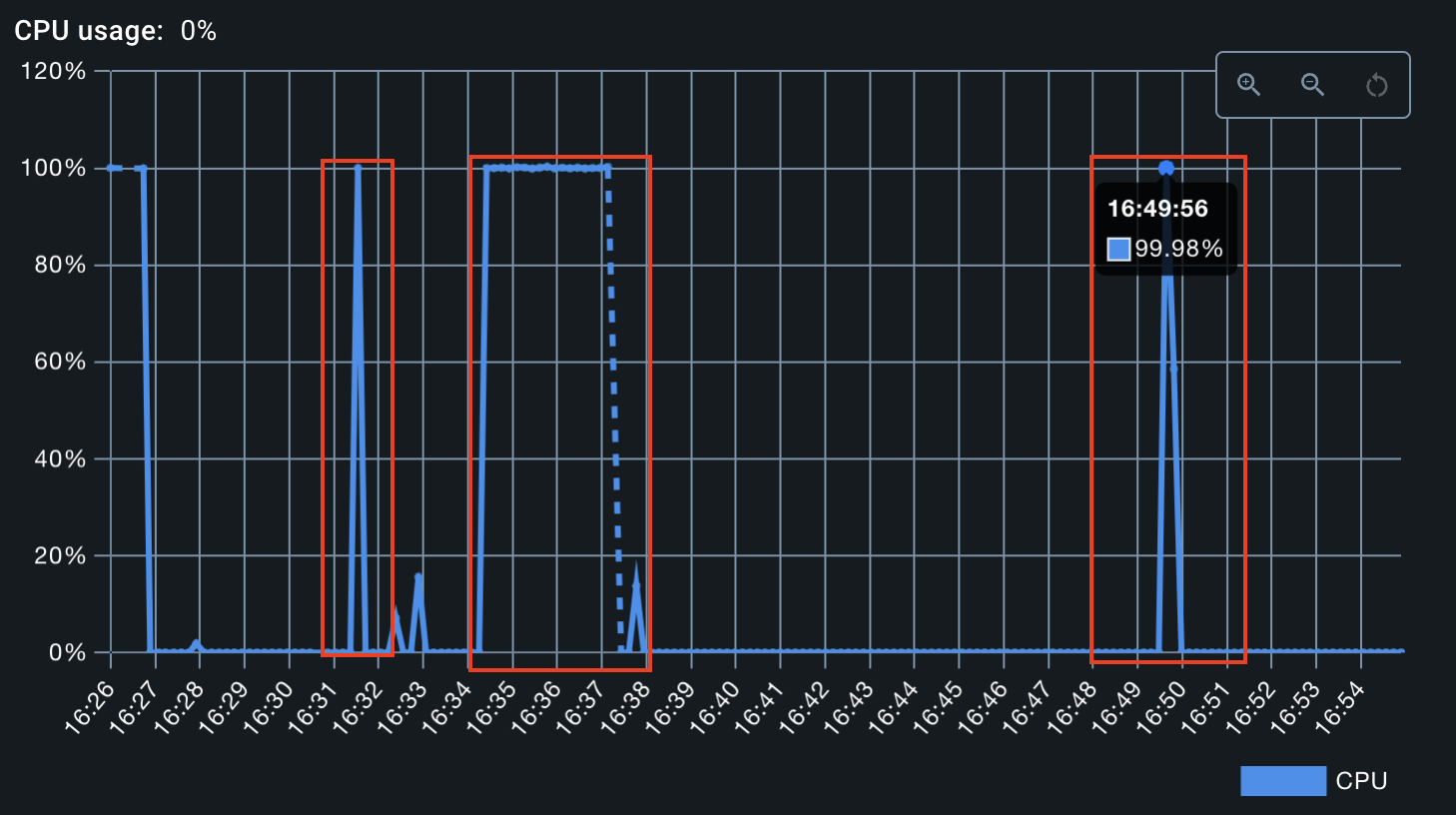 We can see that the server was momentarily overloaded, which led to an extremely long response (almost 12 seconds). During this time, the server was unavailable.