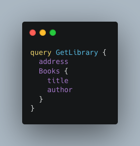 Here we have a very basic query, called GetLibrary, where we explicitly request certain fields. In response, we’ll get only the fields requested.