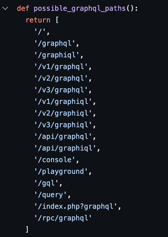 As mentioned with graphql-cop, the list of endpoints to find the path is limited: