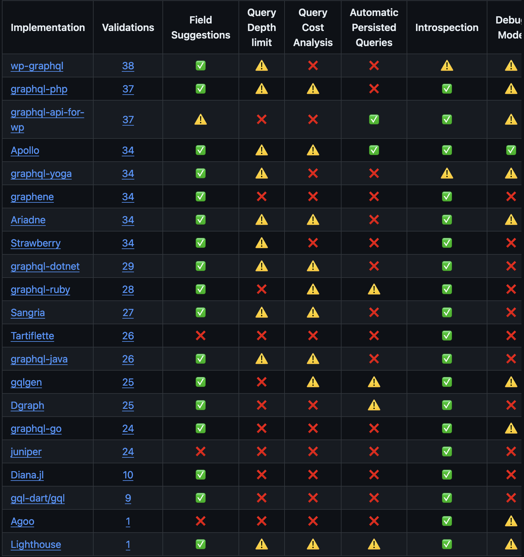 Graphql-cop lists the main vulnerabilities likely to be present in a GraphQL API. It is an open source tool available on github. However, it has not been maintained since 2022.