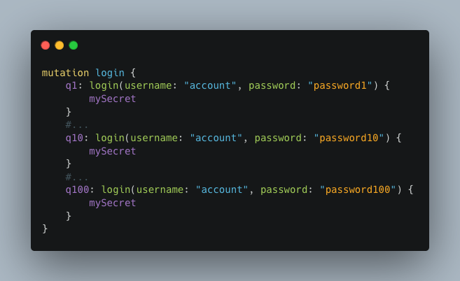 This method considerably speeds up a brute force attack. By sending 100 requests, each containing 100 aliases or batched queries, the attacker already makes 10,000 authentication attempts.