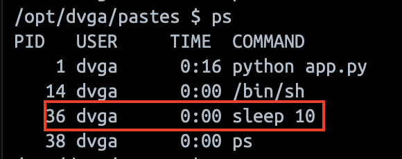 If you take a look at what’s happening on the server side, you’ll see that everything went well, and you’ll find this new file at /opt/dvga/pastes: