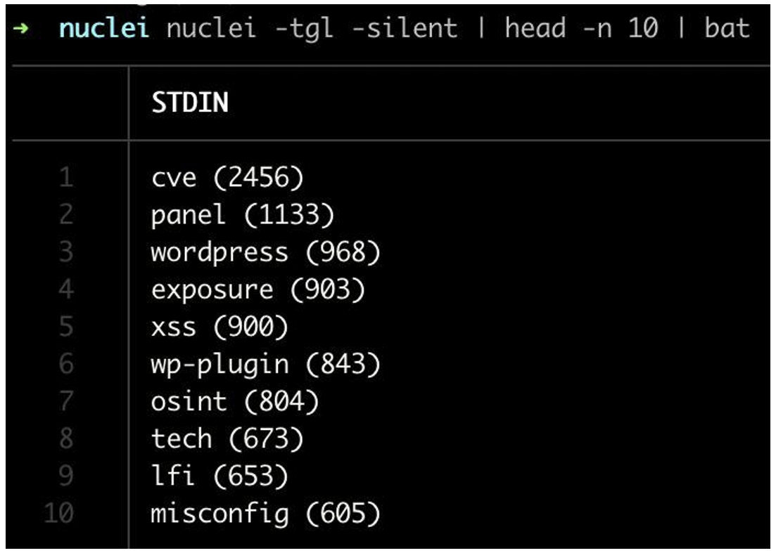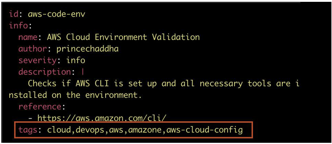 Nuclei is based on a tag system. When a template is created, one or more tags can be added to the YAML file. These tags can be used to classify templates according to different criteria.