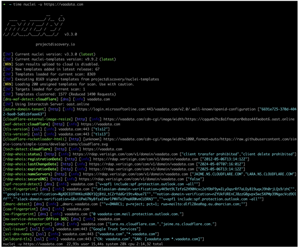 As previously mentioned, Nuclei can be very effective in the reconnaissance phase of a security audit.
