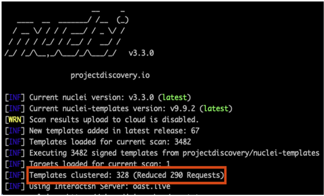 The Nuclei engine also uses template clustering. In other words, it is designed to optimise the number of requests it sends, in order to speed up scanning and reduce network traffic.