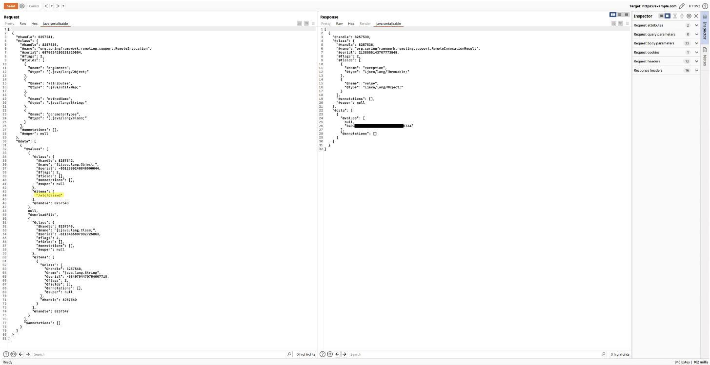 During a web pentest, we tested a web application and a rich client, both written in Java. For each message sent between these two applications, a Java serialized object was also sent.