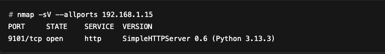 We see that the port has not been identified as an HTTP server. But if we add --allports to force Nmap to scan all ports: