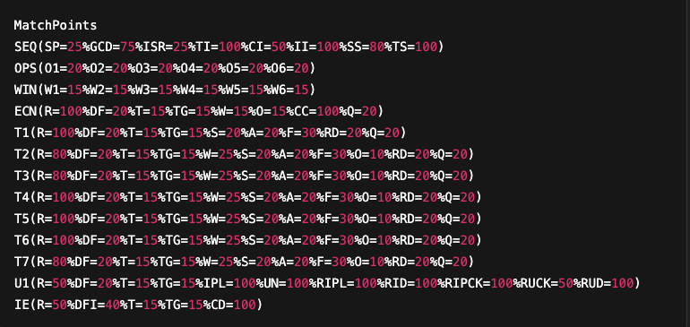 As previously mentioned, Nmap calculates a trust score to determine whether a collected fingerprint (subject fingerprint) matches a reference fingerprint. This score is based on a model defined at the beginning of the nmap-os-db file, recognizable by the MatchPoints directive.