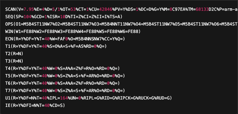 Fortunately, this format is relatively simple to decode: simply remove the OS: prefix from the beginning of each line, then add a line break after each closing parenthesis.