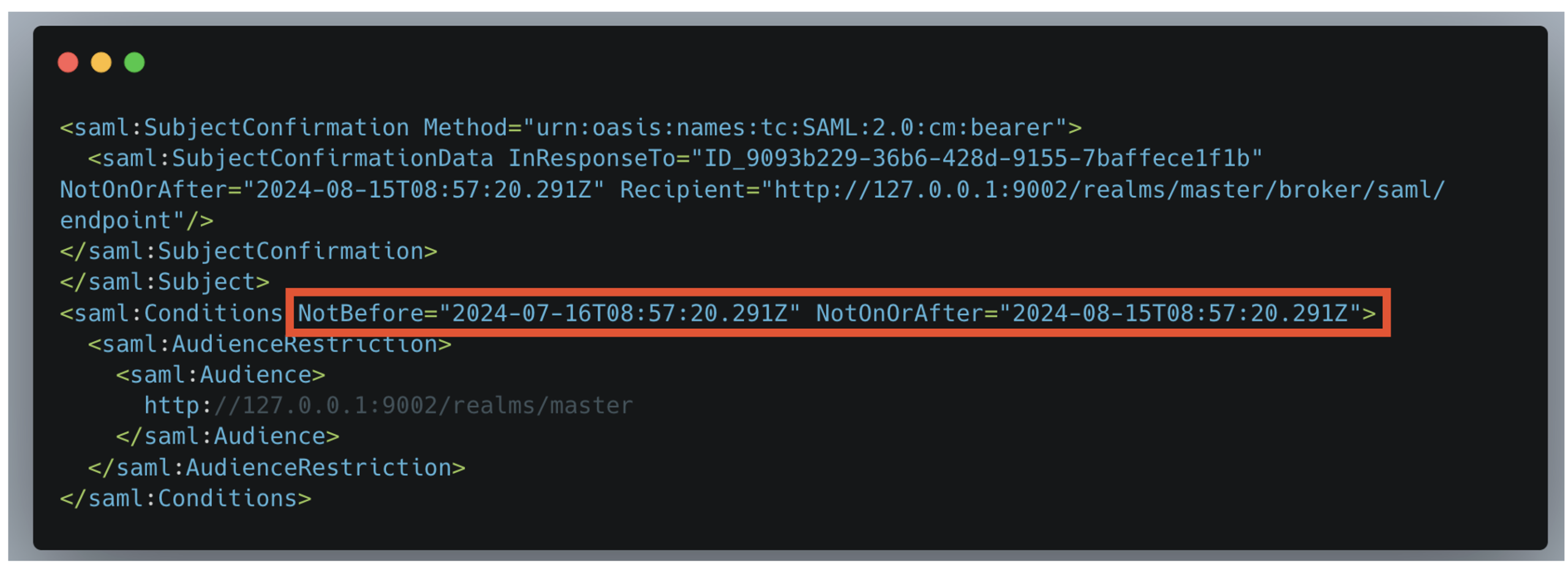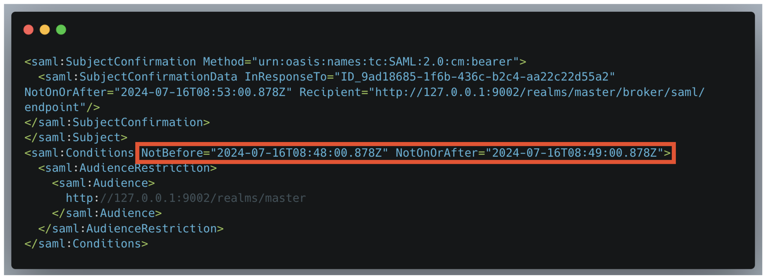 To protect against replay attacks, it is necessary to use tokens with a limited lifespan: SAML assertions must include timestamps and very short validity periods. In addition, assertions must be invalidated as soon as they are used.