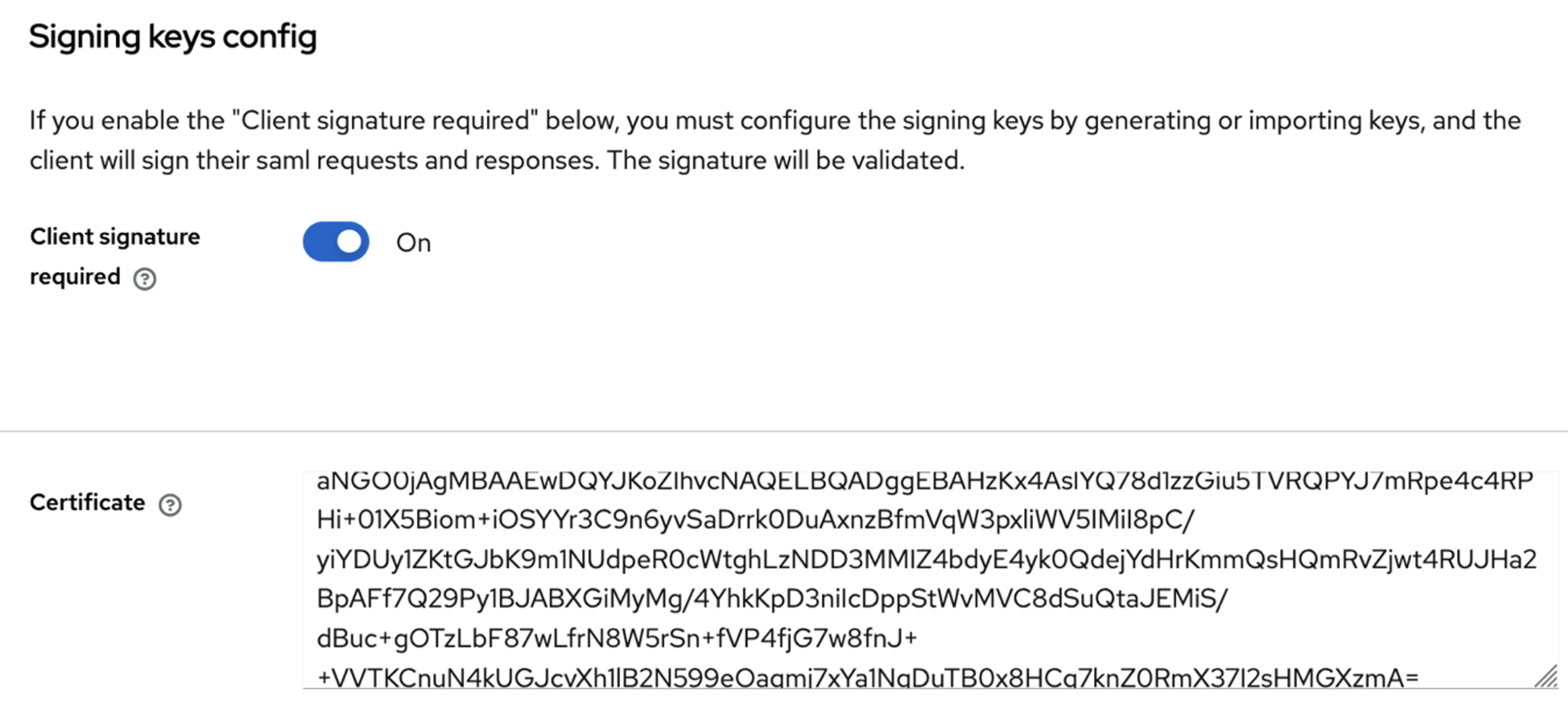 Signing keys are used to guarantee the authenticity and integrity of SAML messages. When an Identity Provider (IdP) signs a SAML assertion, it uses a private key to create a digital signature.