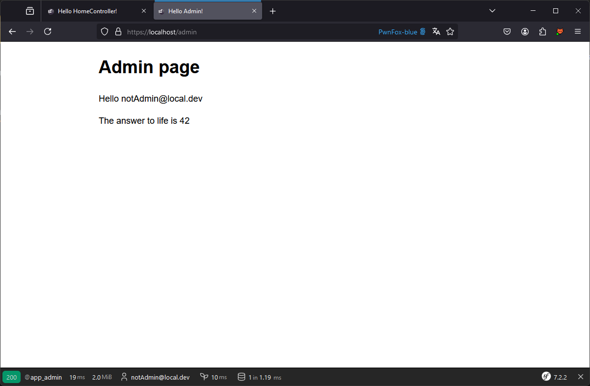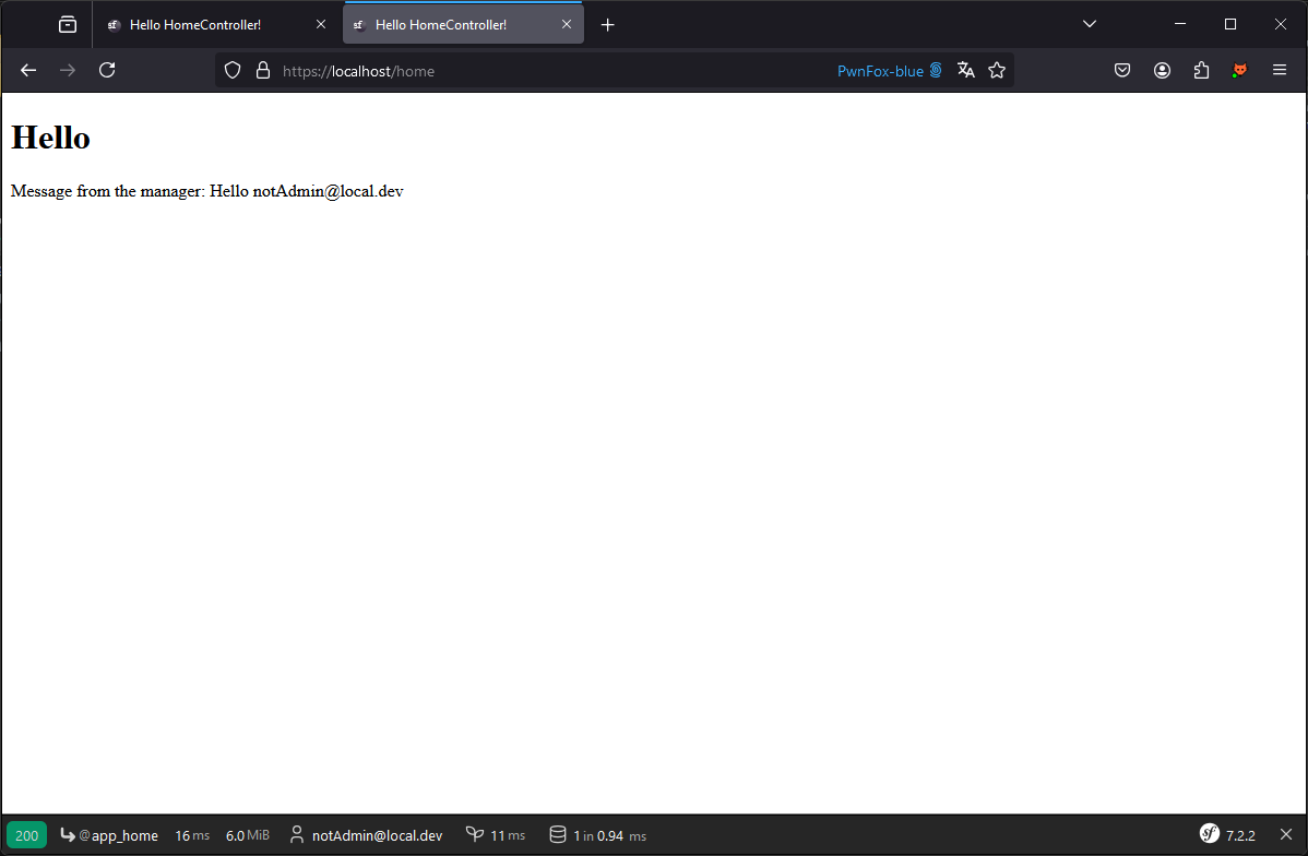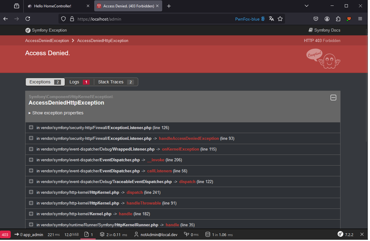 supports(): This method checks whether the voter should intervene for a given request. Here, the voter only applies if the attribute is invoice-view and the resource concerned is an invoice.voteOnAttribute(): This method contains the logic for determining whether the user is authorised to access the resource. For example, it checks whether the user is the owner of the invoice. If so, it returns true; if not, false.With this vote in place, a user such as notadmin will no longer be able to access resources belonging to admin.