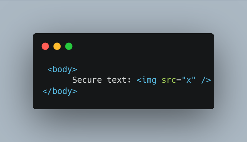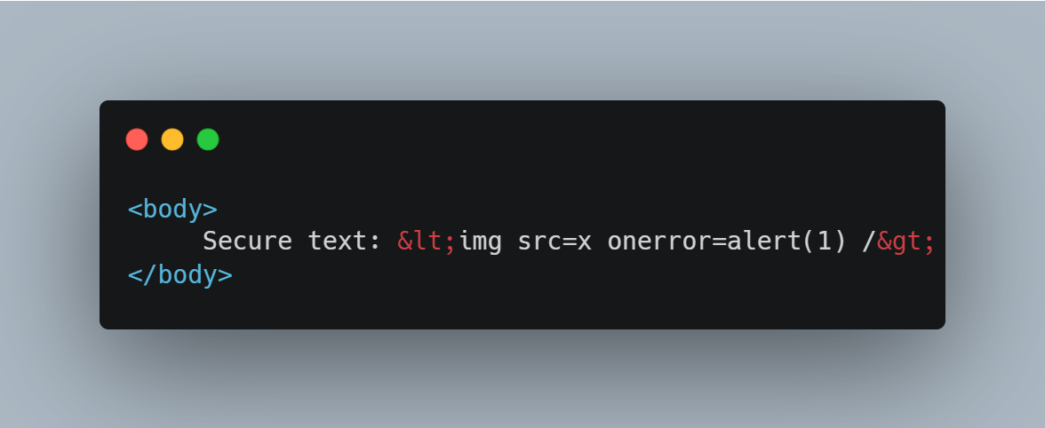Note: In this section, the value of the text variable will be <img src=x onerror=alert(1) />.