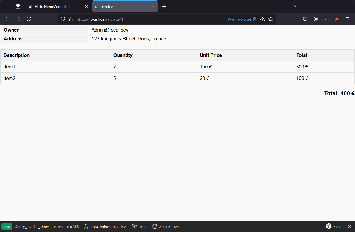 Here, for example, notAdmin is able to access the admin’s invoice: