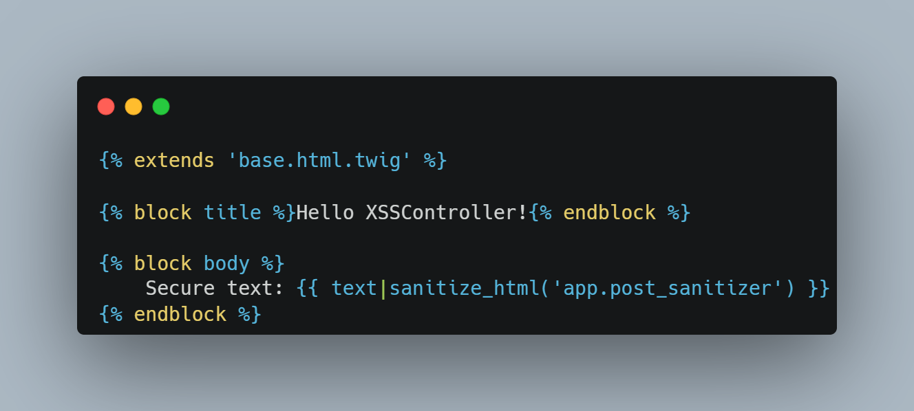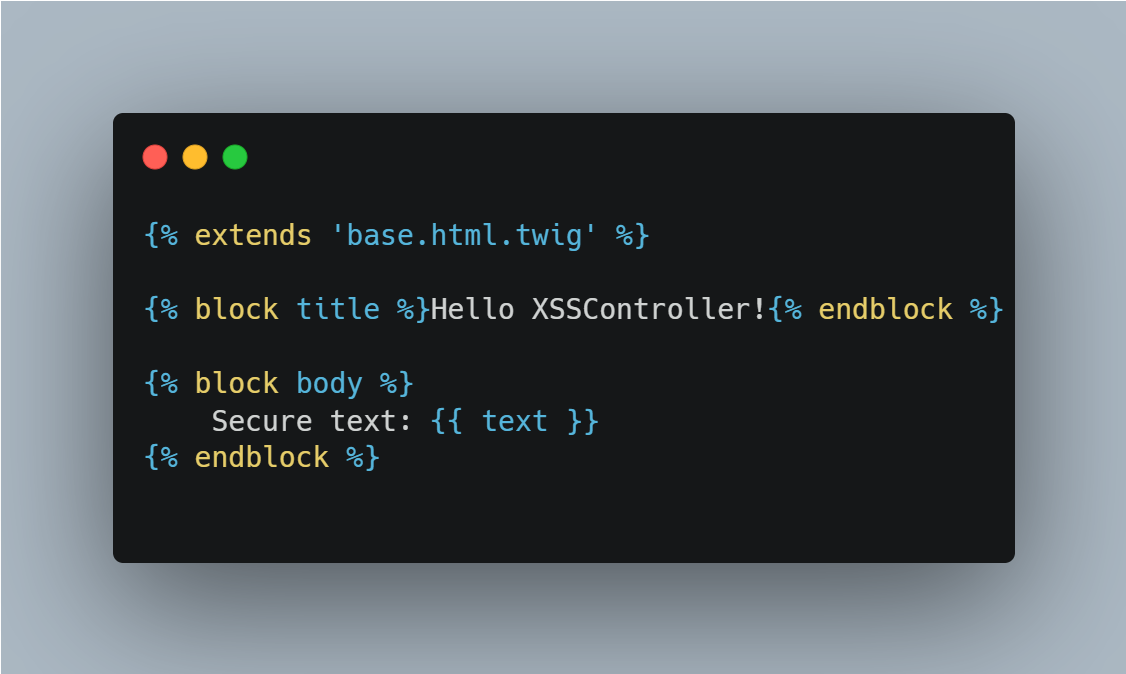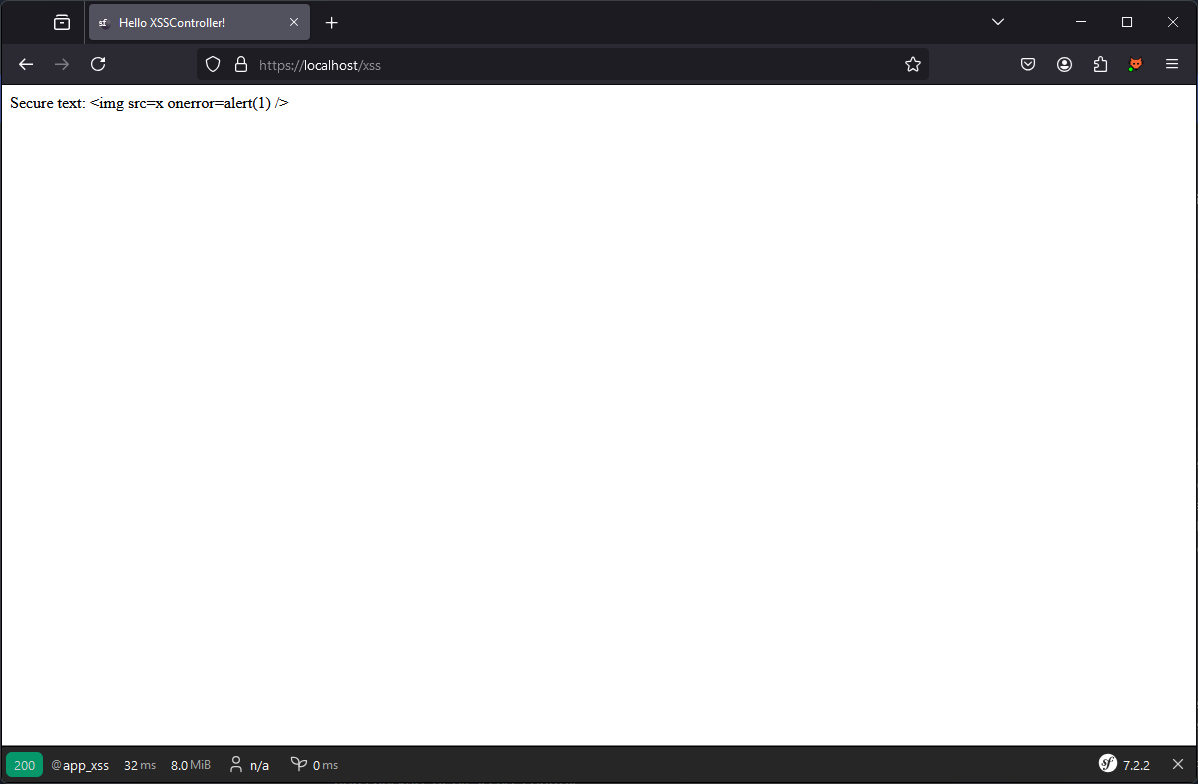 For example, the following view is not vulnerable to XSS thanks to Twig’s automatic encoding management.