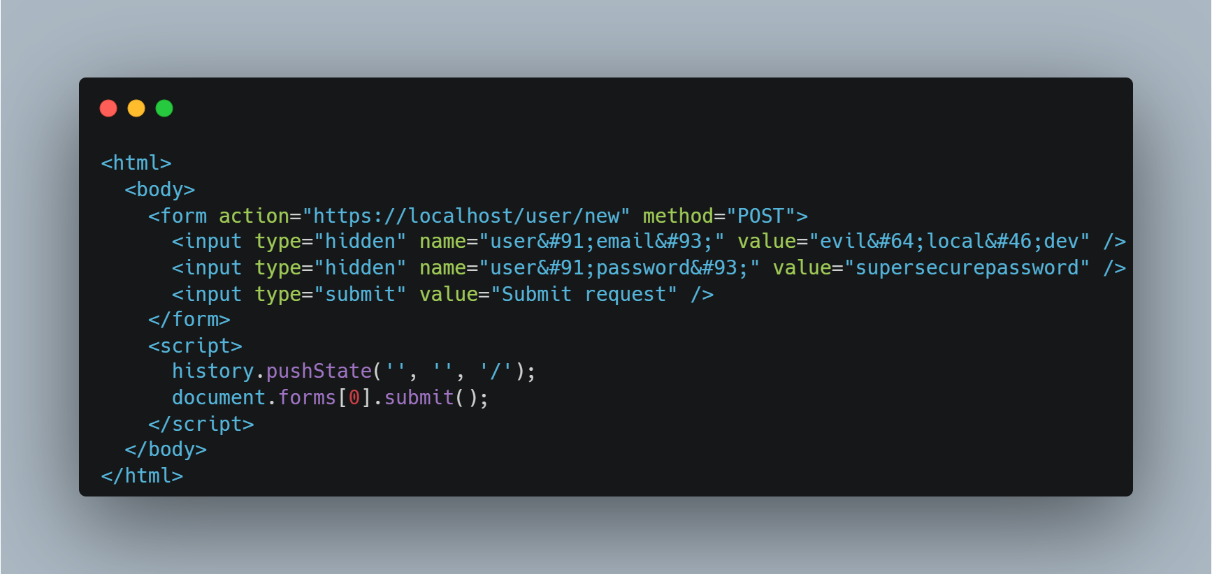 Take, for example, a user creation form, which is only accessible to administrators. The attacker’s objective would be to direct the administrator to a site they control, where a malicious form would be designed to submit this form without the administrator’s knowledge. This would allow the attacker to exploit the administrator’s privileges to create a malicious user.