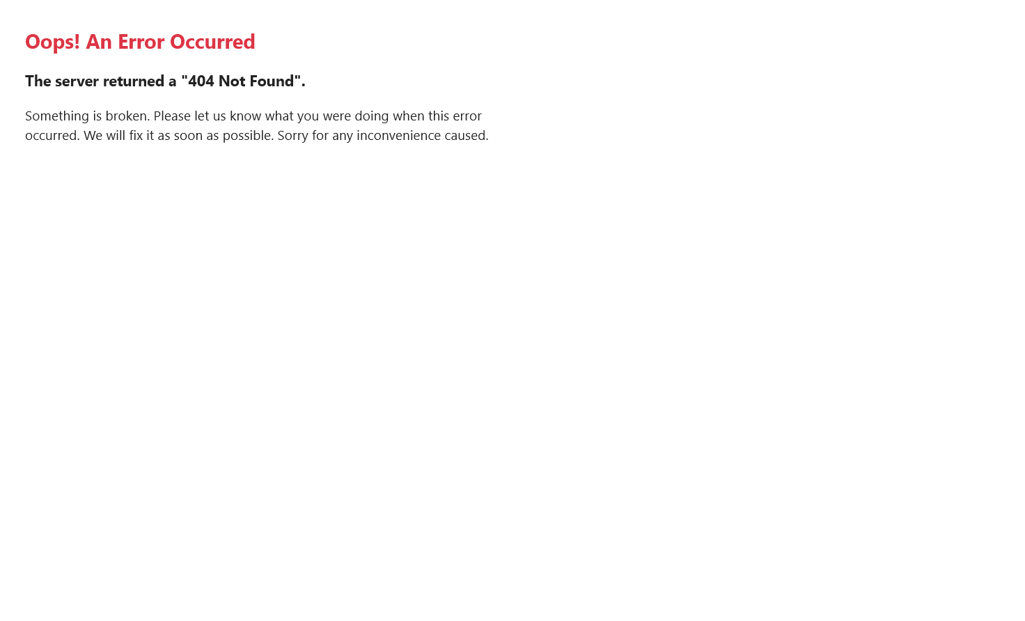 Dev mode also has fairly specific errors. For example, a 404 page will look like this:
