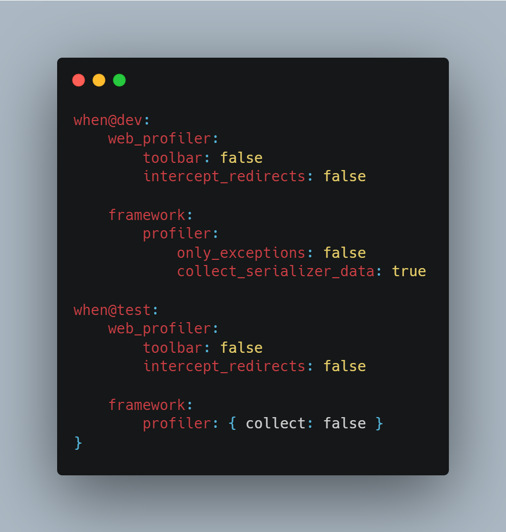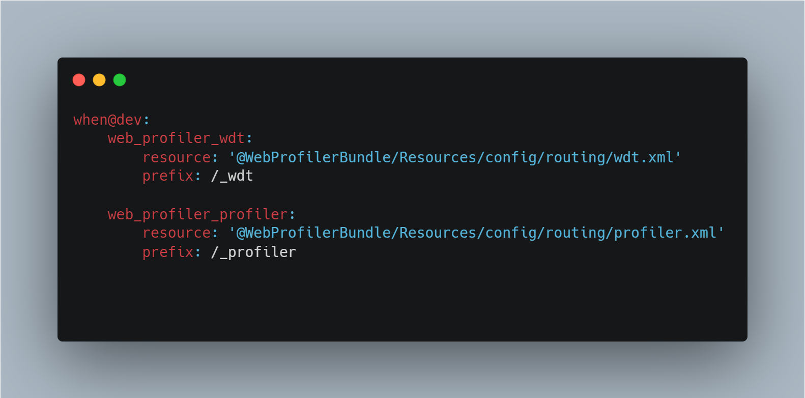 Note: It may be tempting to rely on a strategy of protection by obscurity, for example by using hard-to-guess URLs for the profiler and disabling the toolbar. However, this approach is strongly discouraged, as it relies on fragile security that can be circumvented.