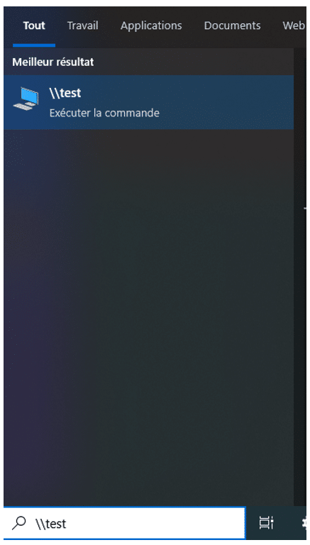 On his side, the user enters “\test” in a search bar (Start menu, Windows Explorer or Chrome):