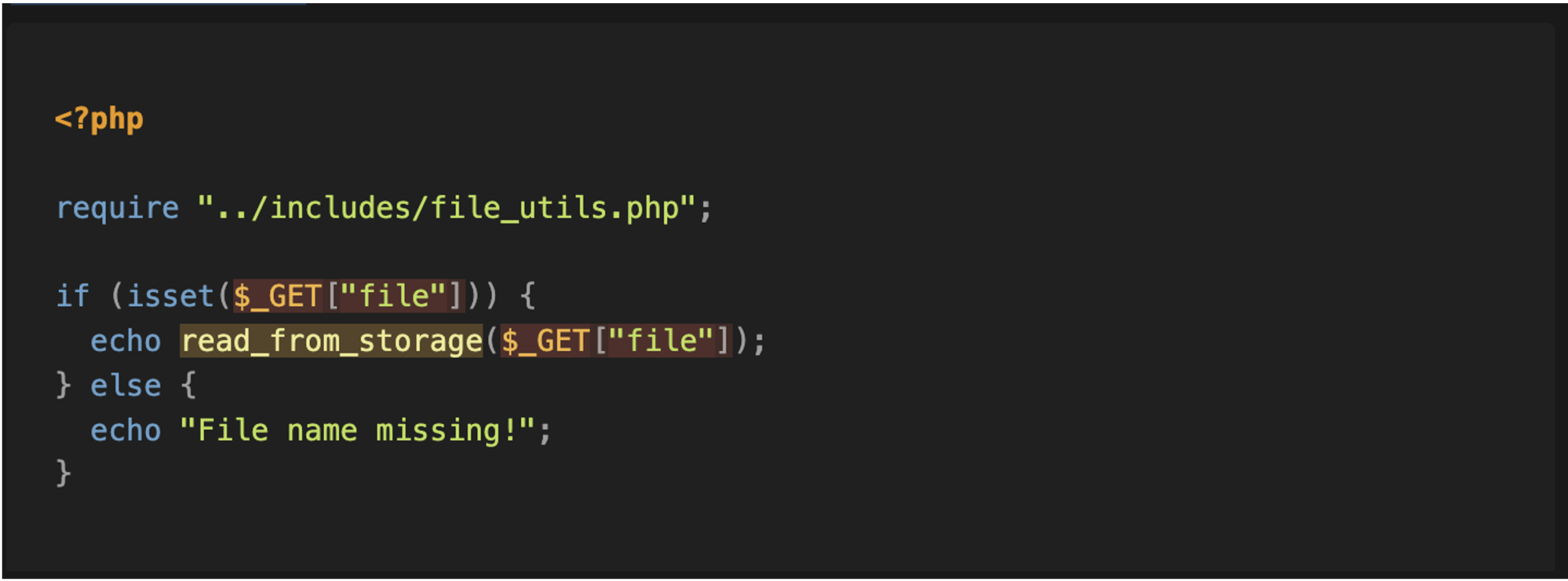Finally, we can see that the entire chain is present: it is possible to provide the query parameter ‘file’ (source) to reach the ‘file_get_contents’ function (sink) and read the file’s contents.