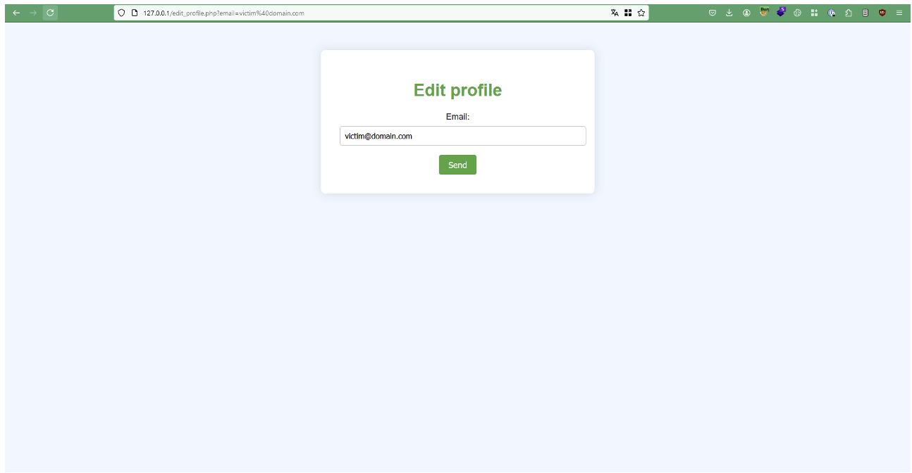 In this context, we could embed the legitimate page in an iframe with the attacker’s email in the email parameter. All that’s left to do is to make the targeted person click on the button to change their email address.