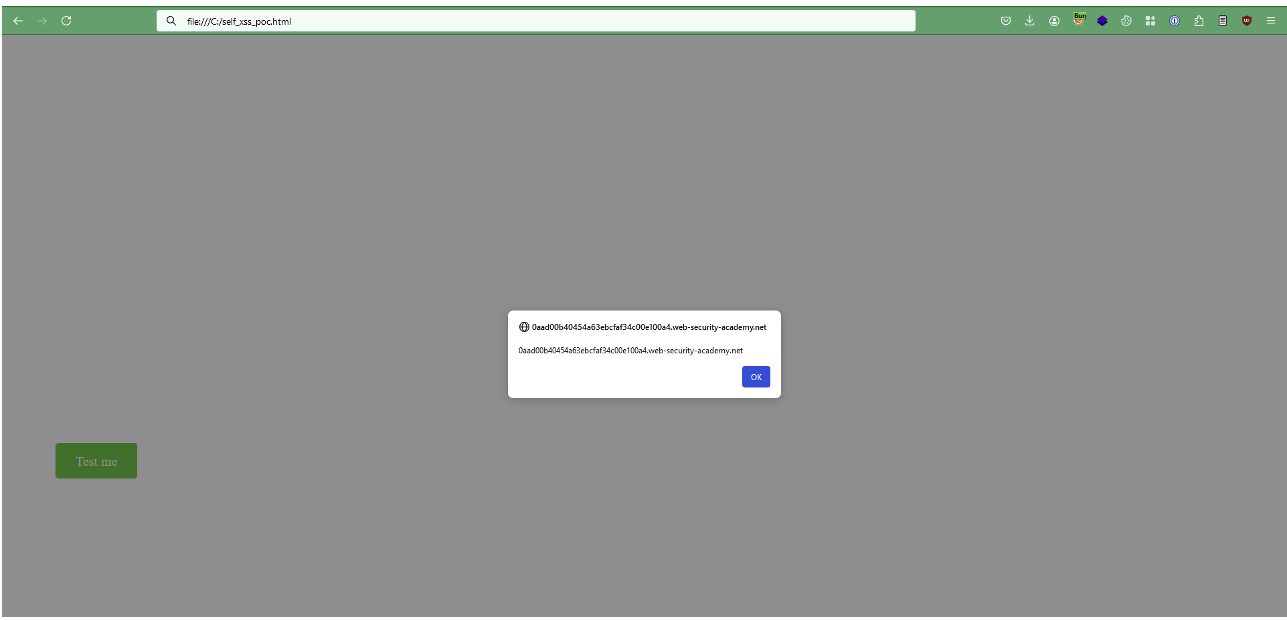 Let’s take the case of a web application where a Self-XSS vulnerability has been discovered in a feedback form. The vulnerability can only be exploited when the user clicks on the ‘Submit feedback’ button after filling in the ‘name’ field containing the JavaScript code.