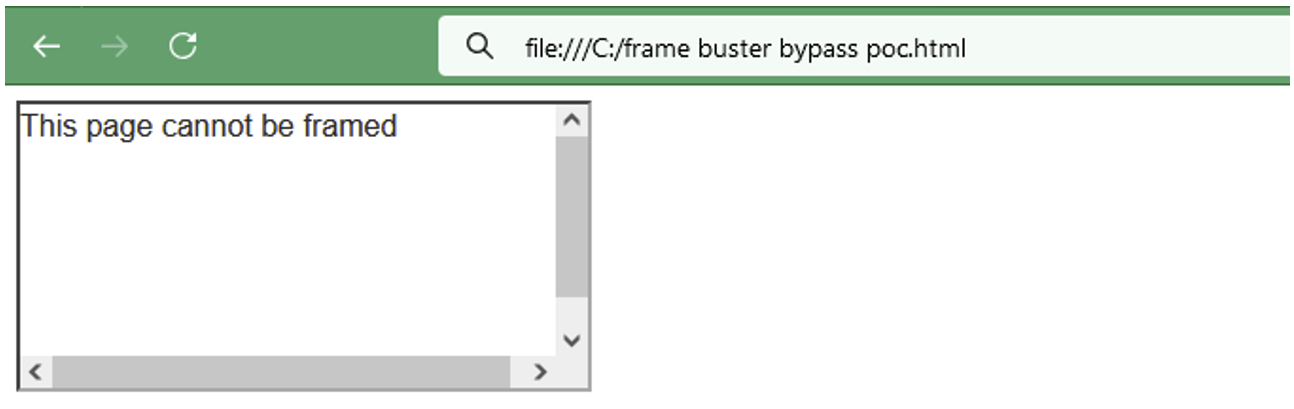 Here, if an attacker tries to render the web page in an iframe, he will get the following error message.