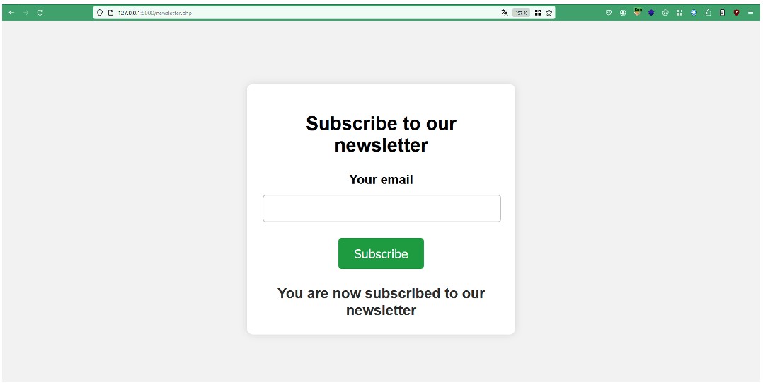 Let’s take the example of a function that allows you to subscribe to a newsletter. This feature only returns a standard message confirming that the user has subscribed.