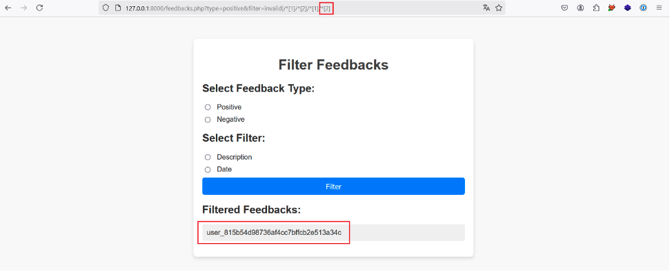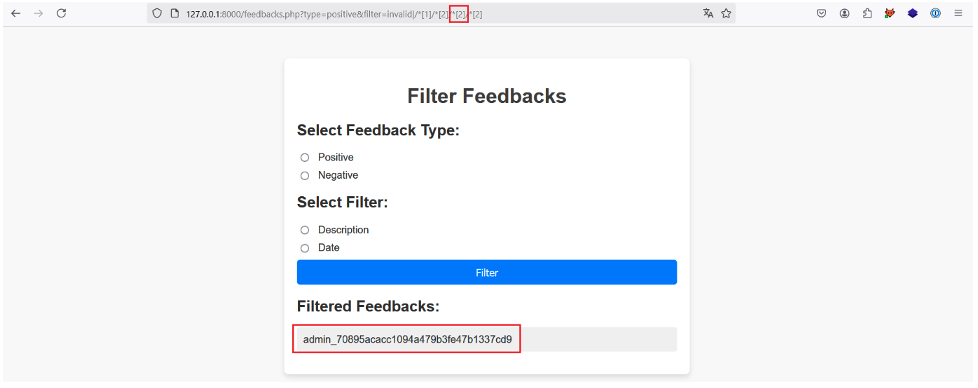 To do this, we can try to see if the filter parameter is also vulnerable to XPath injections and exploit it.