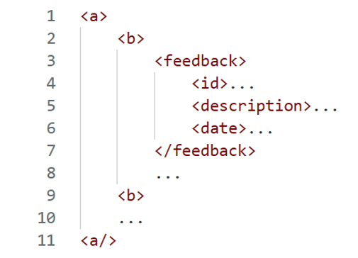 An XML document is characterised by a well-defined tree structure. Here is an example: