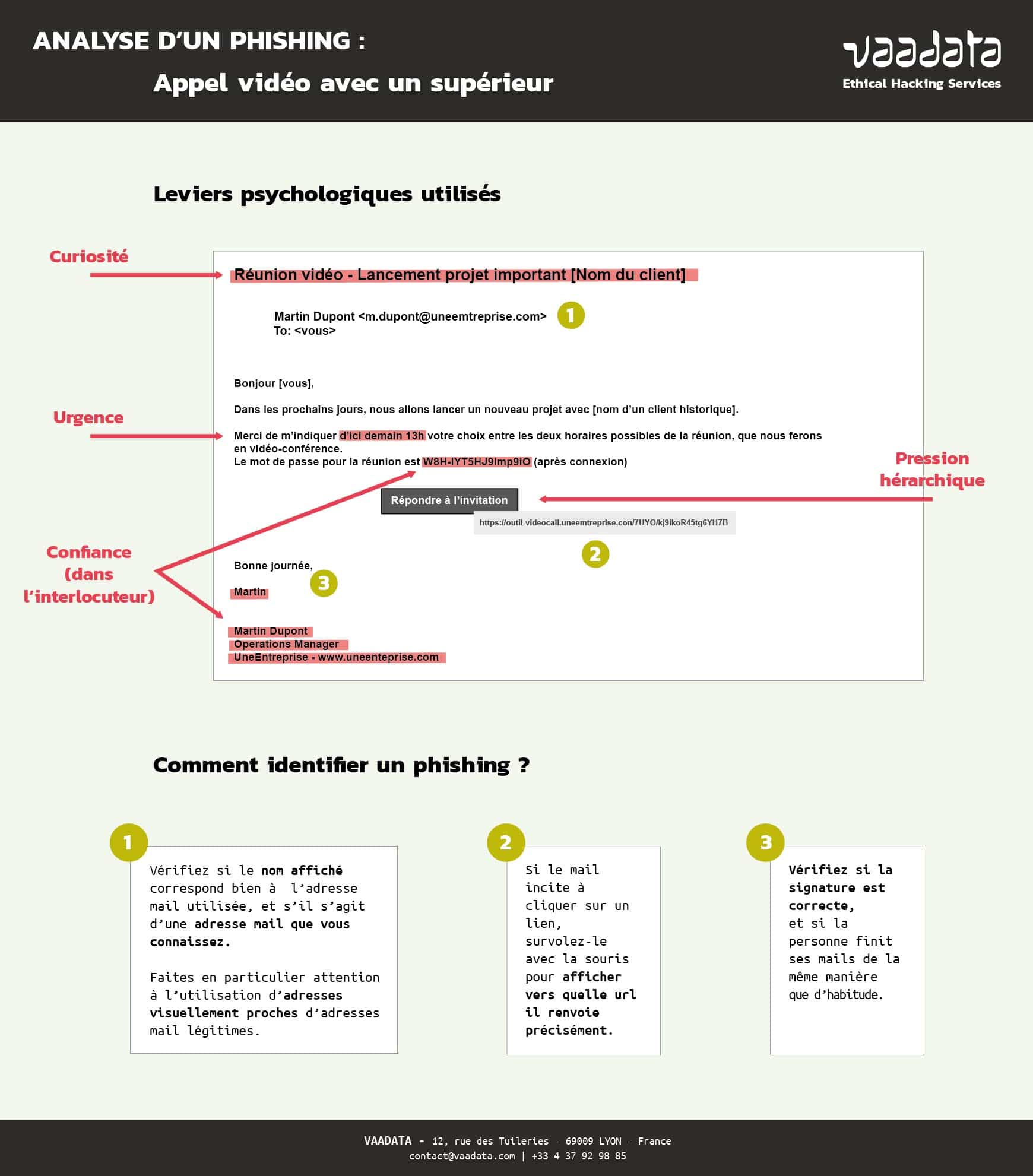 Enfin, un pentest d’ingénierie sociale peut être mené pour sensibiliser les collaborateurs d’une entreprise à ce type d’attaques par des mises en situation réalistes qui resteront en mémoire.
