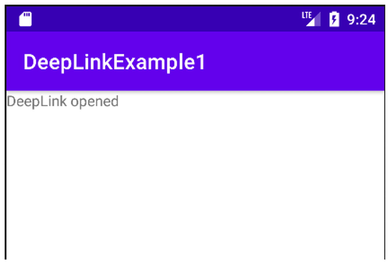 Si l’utilisateur sélectionne l’application « my deeplink app », il sera directement redirigé vers une activité de l’application. Dans notre cas, c’est l’activité « DeepLinkExample1 » qui a été configurée pour ouvrir ce type de lien. Elle indique seulement que le lien en question a bien été ouvert :
