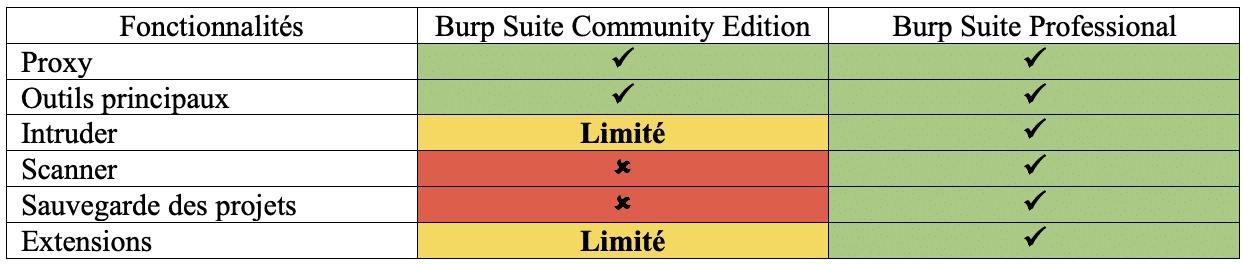 Avant d’aller plus loin, il est important de noter que Burp Suite est disponible dans deux versions différentes :