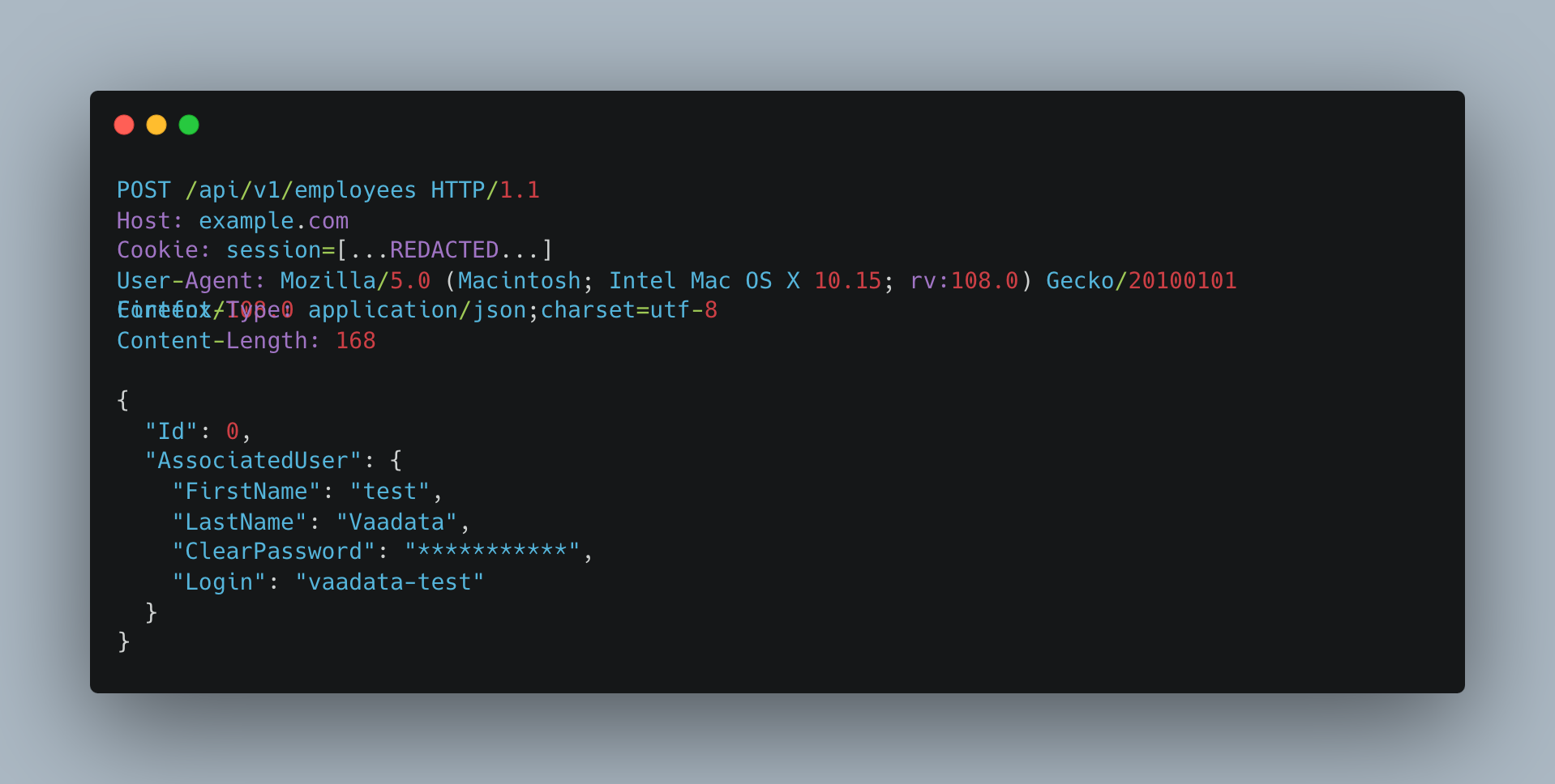 En passant par l’interface graphique, la requête d’ajout d’un utilisateur ressemblait à cela :