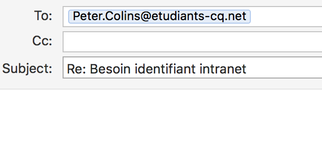 Vous recevez par exemple un email de votre collègue Peter qui vous demande si vous pouvez lui redonner le mot de passe de l’accès à l’intranet de l’entreprise que vous aviez créé pour lui 2 mois plus tôt. Vigilant, vous observez l’adresse mail de l’émetteur. Vous savez que sa réelle adresse mail est Peter.Collins@etudiants-cp.net.